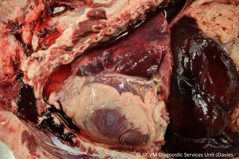 Shown: Hydrothorax and hydropericardium in right-sided heart failure