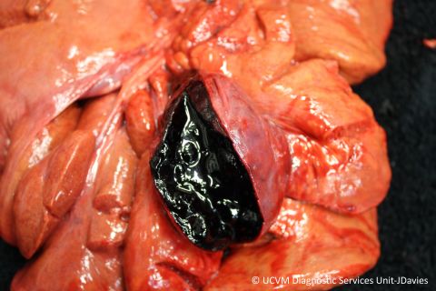 Ruminant, Ox: Lung. Embolic pneumonia associated with toe tip necrosis.
