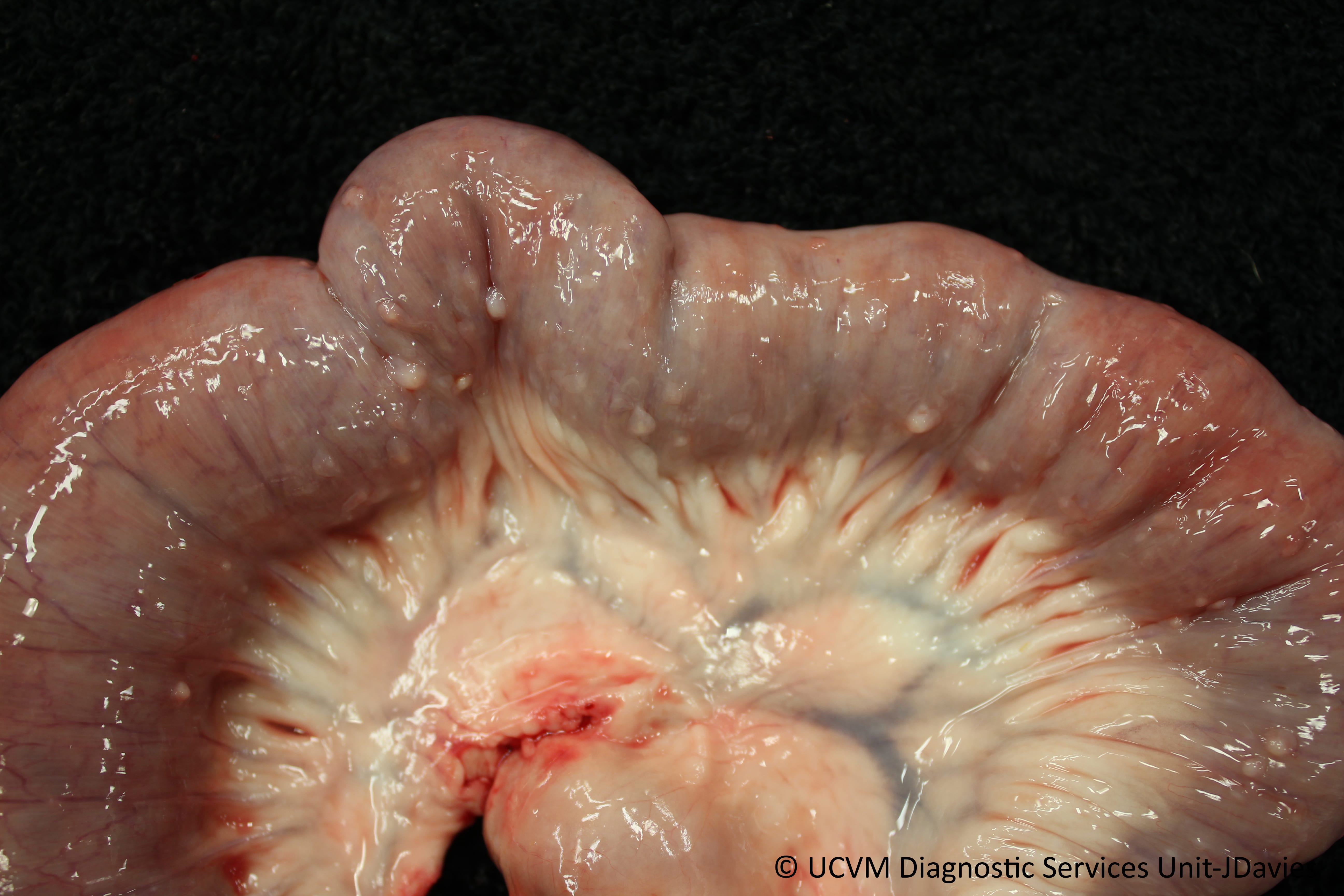 - In sheep, goats, and other ruminants, diarrhea may not be seen.