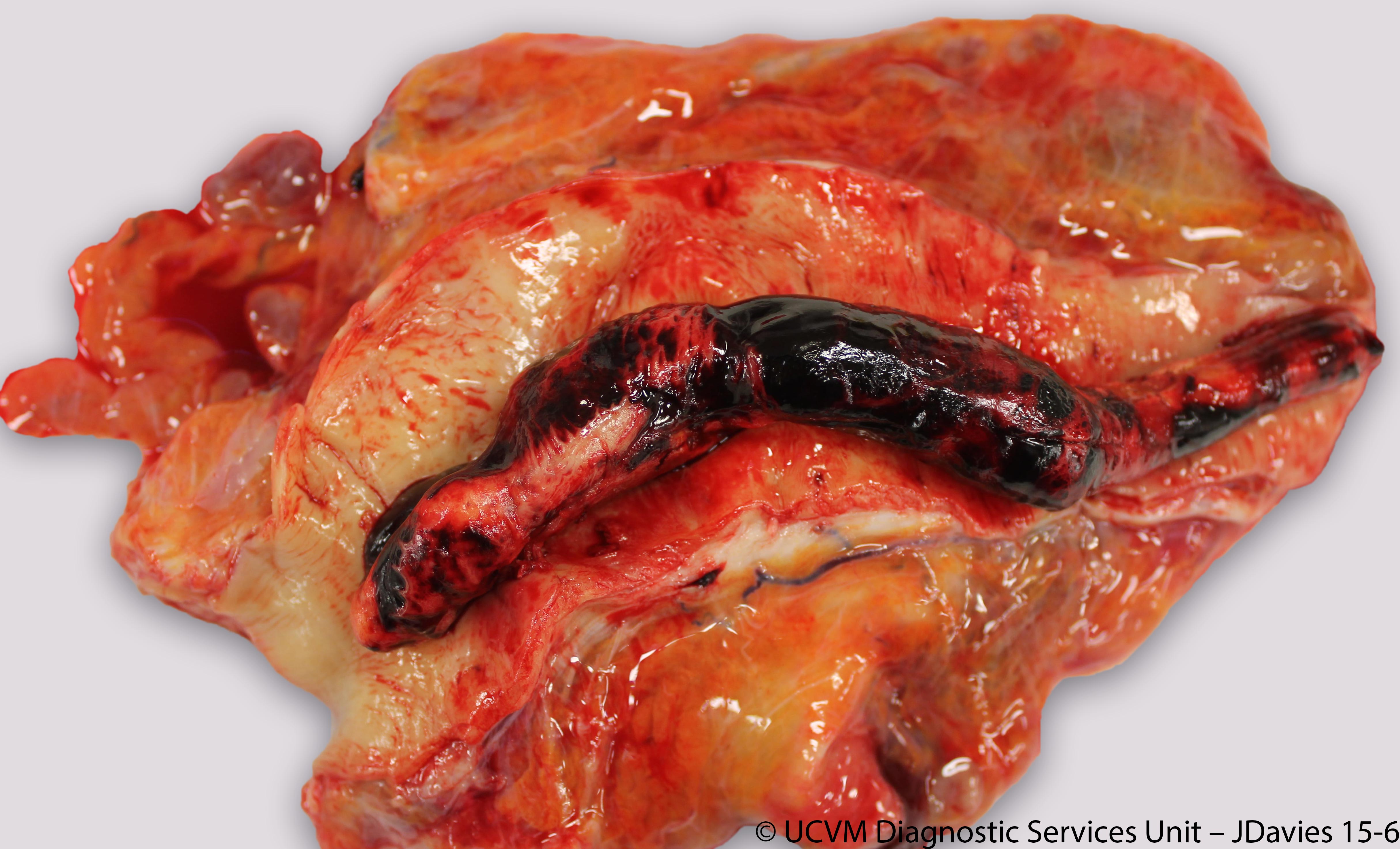 Lesions range from insignificant intimal tracks, to occlusive thrombotic lesions in the cranial mesenteric and ileocecocolic arteries