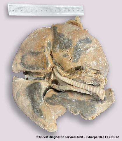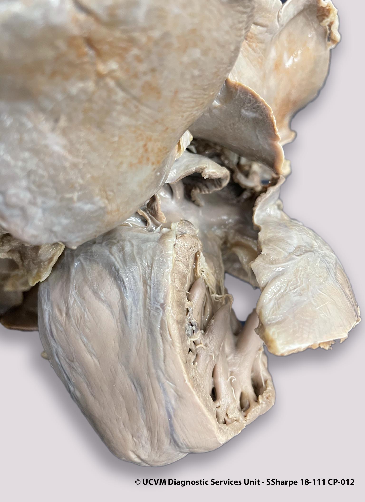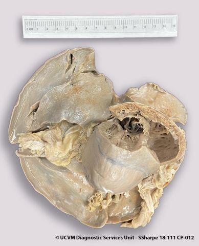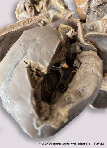 Filarial nematodes right atrium, ventricle & pulmonary arteries; pulmonary thromboembolism right pulmonary artery branch