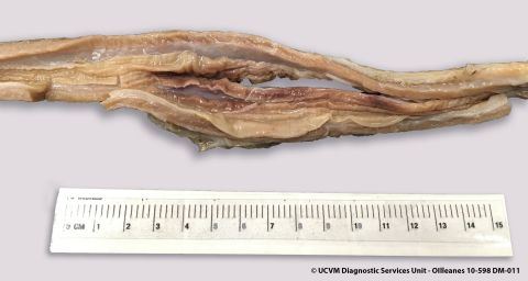 Wild Mammal, Bison: Omentum. Caseonecrotic peritonitis caused by Mycoplasma bovis.