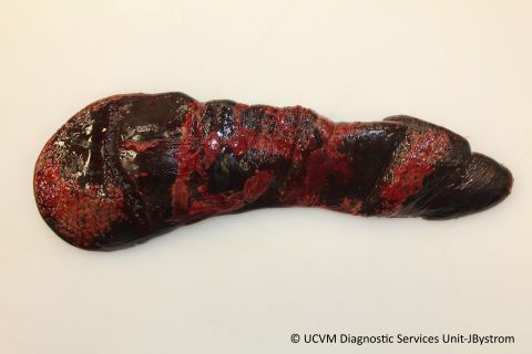 Shown: Infarction or ischemic necrosis secondary to diaphragmatic hernia