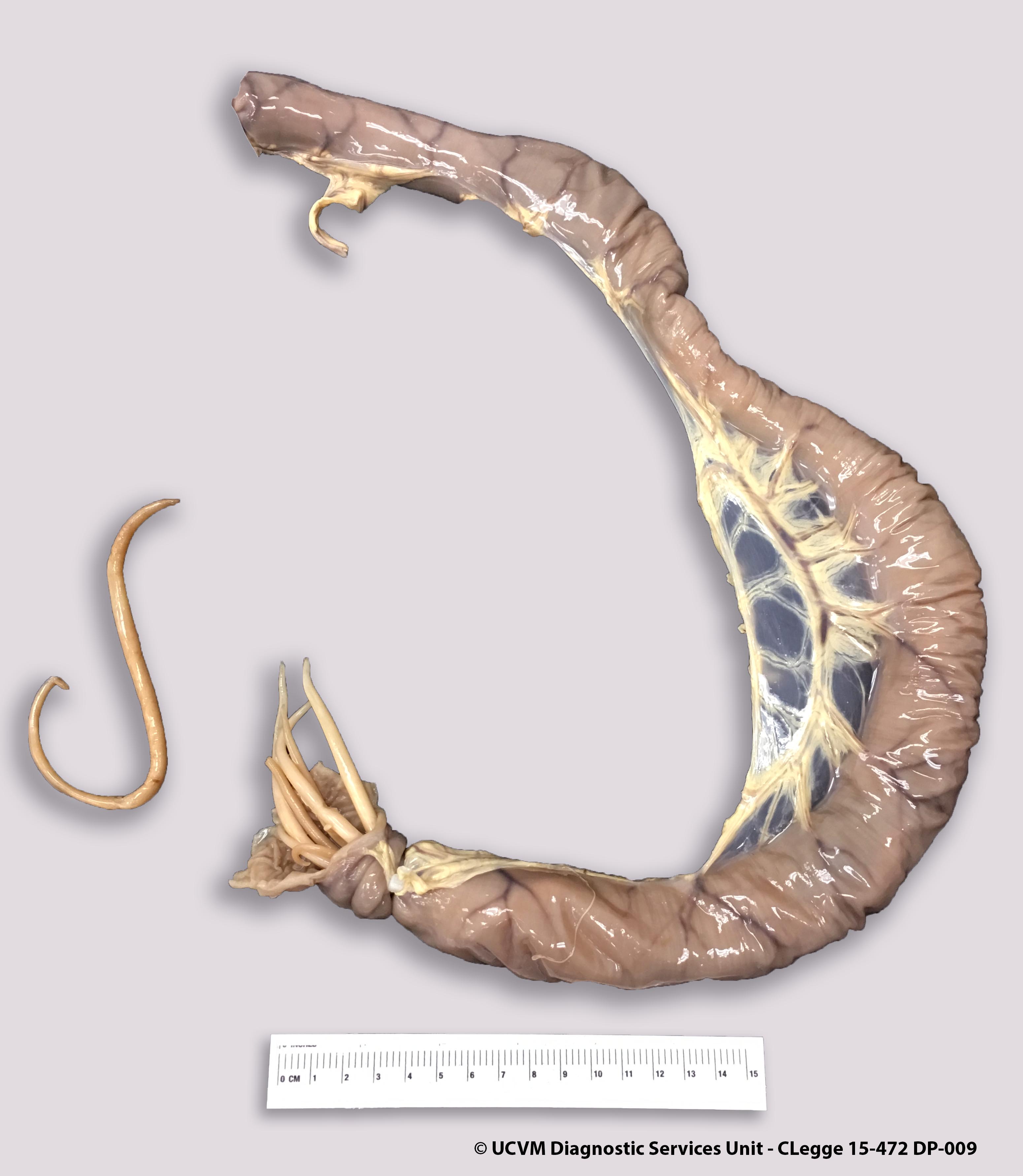 Shown: Parascaris equorum infestation, small intestinal ascariasis