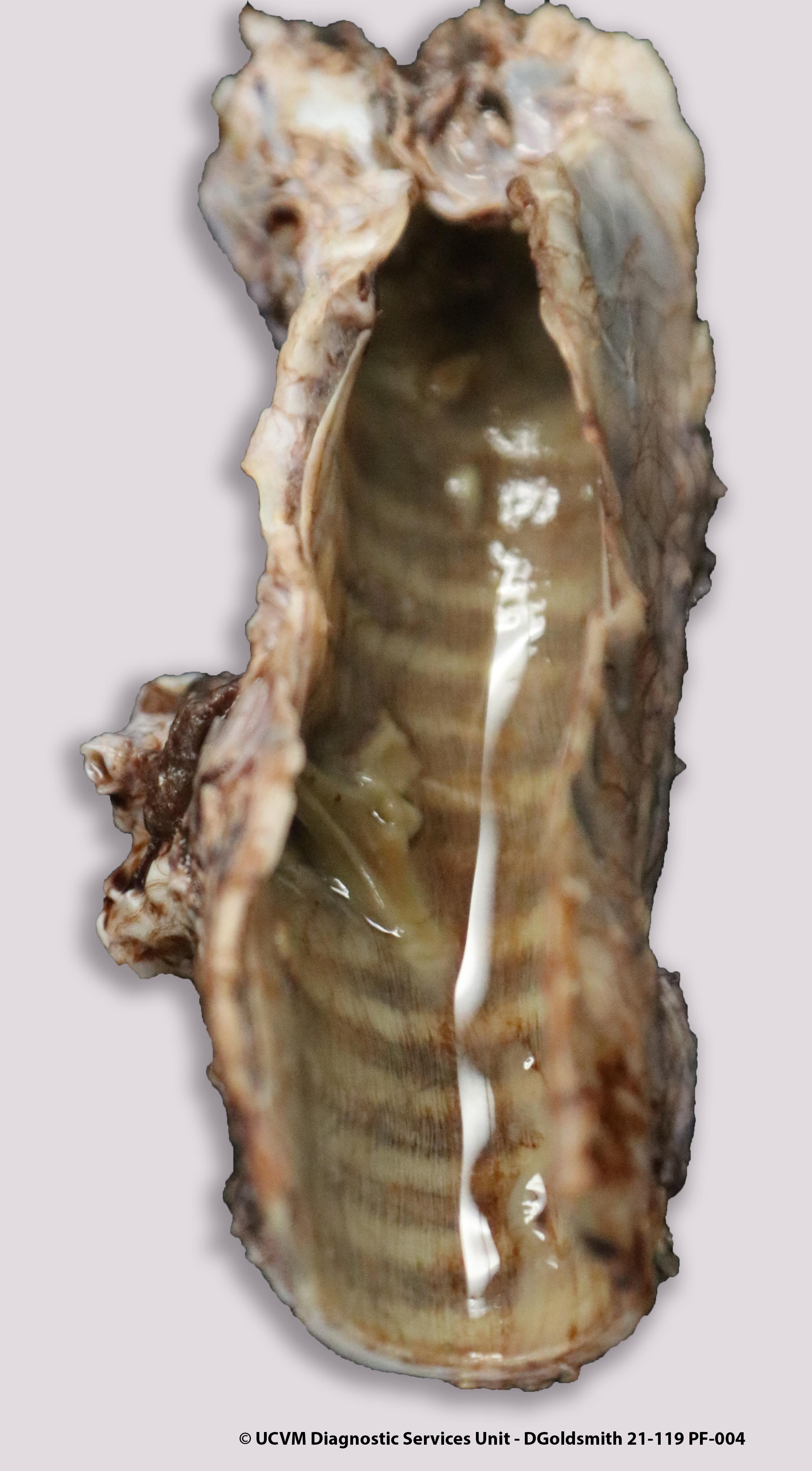 Fungal Tracheitis and pneumonia (Aspergillus spp.) secondary to viral colitis