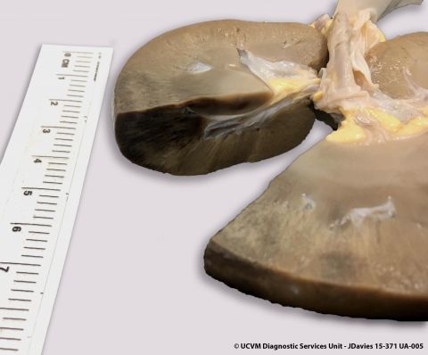 Shown: Renal infarcts presumed due to disseminated intravascular coagulation (DIC)