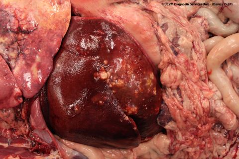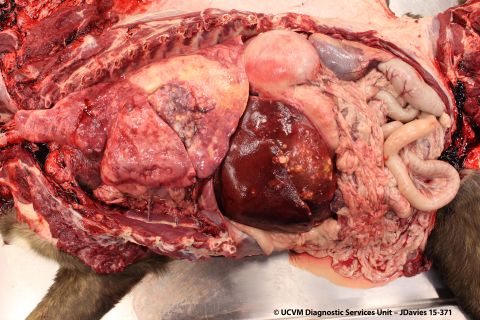 Ruminant, Bovine: Reticulum. Wire foreign body.
