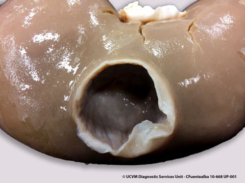 Equid, Foal: Intestines. Necrotizing and hemorrhagic enterocolitis caused by Clostridium (Clostridial enteritis).