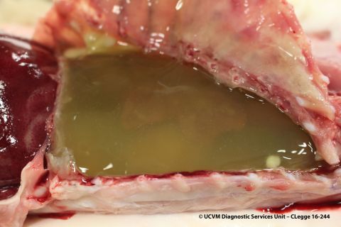 Fibrinous and pyogranulomatous pleuritis due to feline infectious peritonitis (FIP)