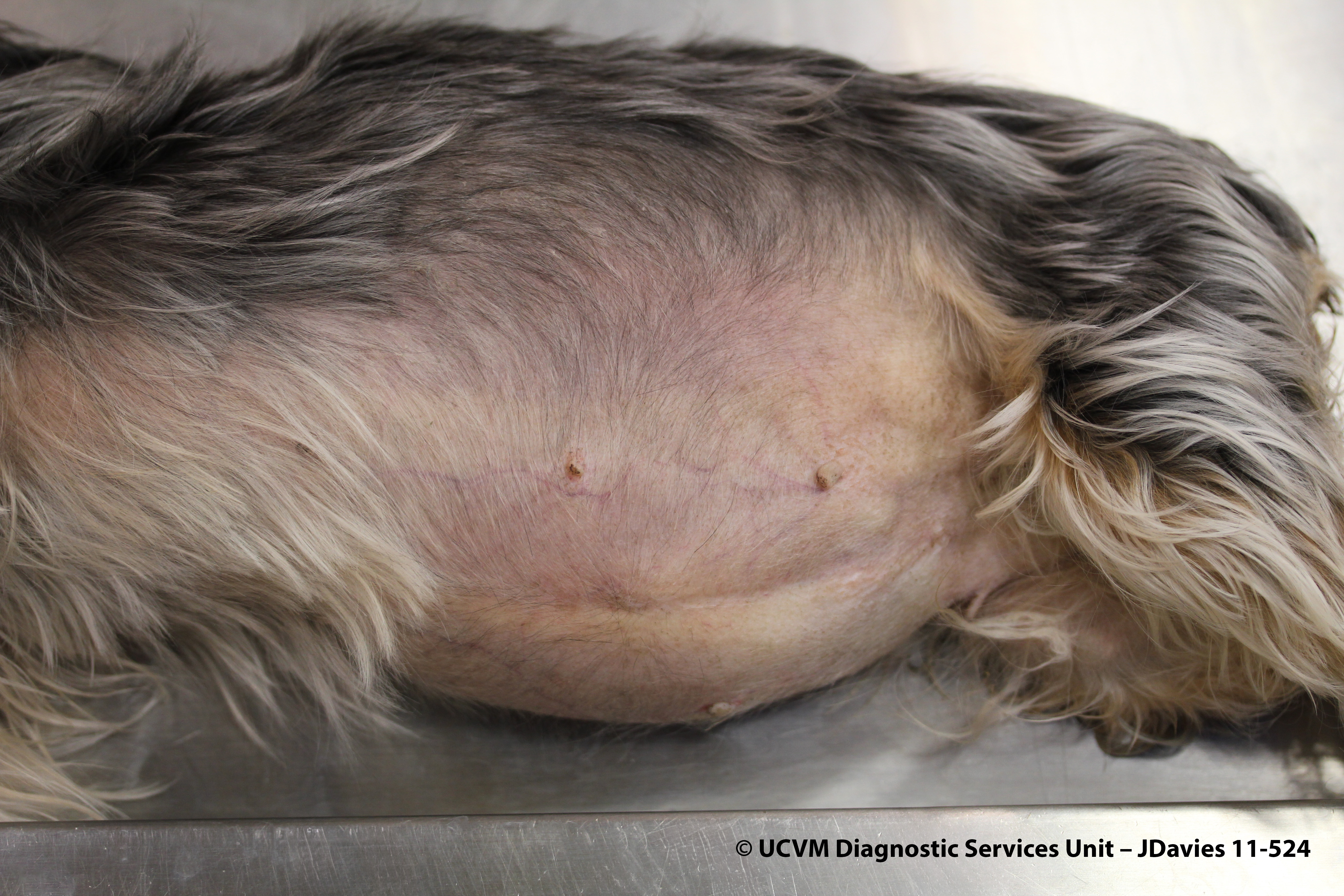 Iatrogenic hyperadrenocorticism causing alopecia, dermal atrophy, and pendulous abdomen