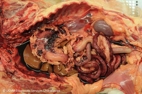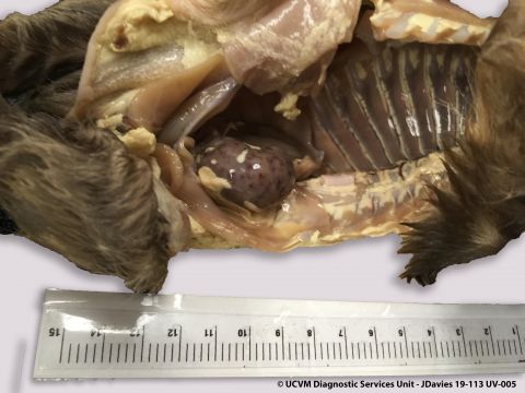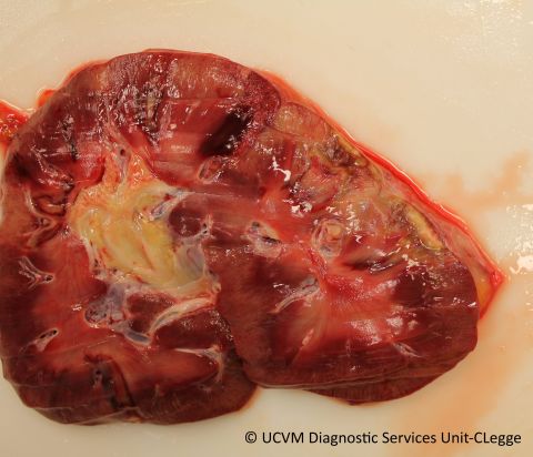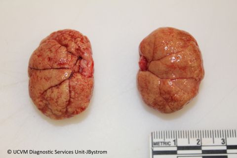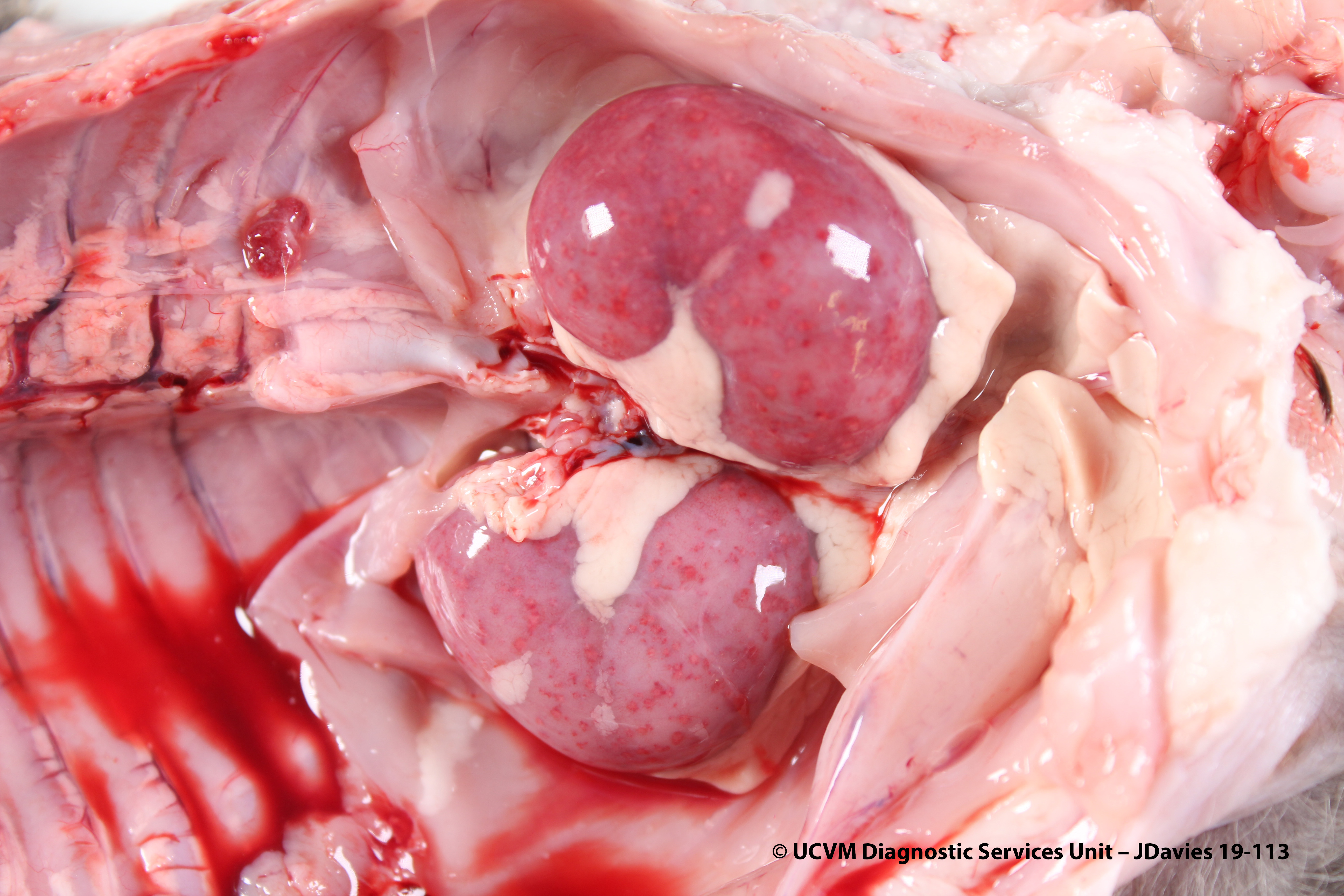 Shown: Renal hemorrhage, multifocal, due to canine herpesvirus-1