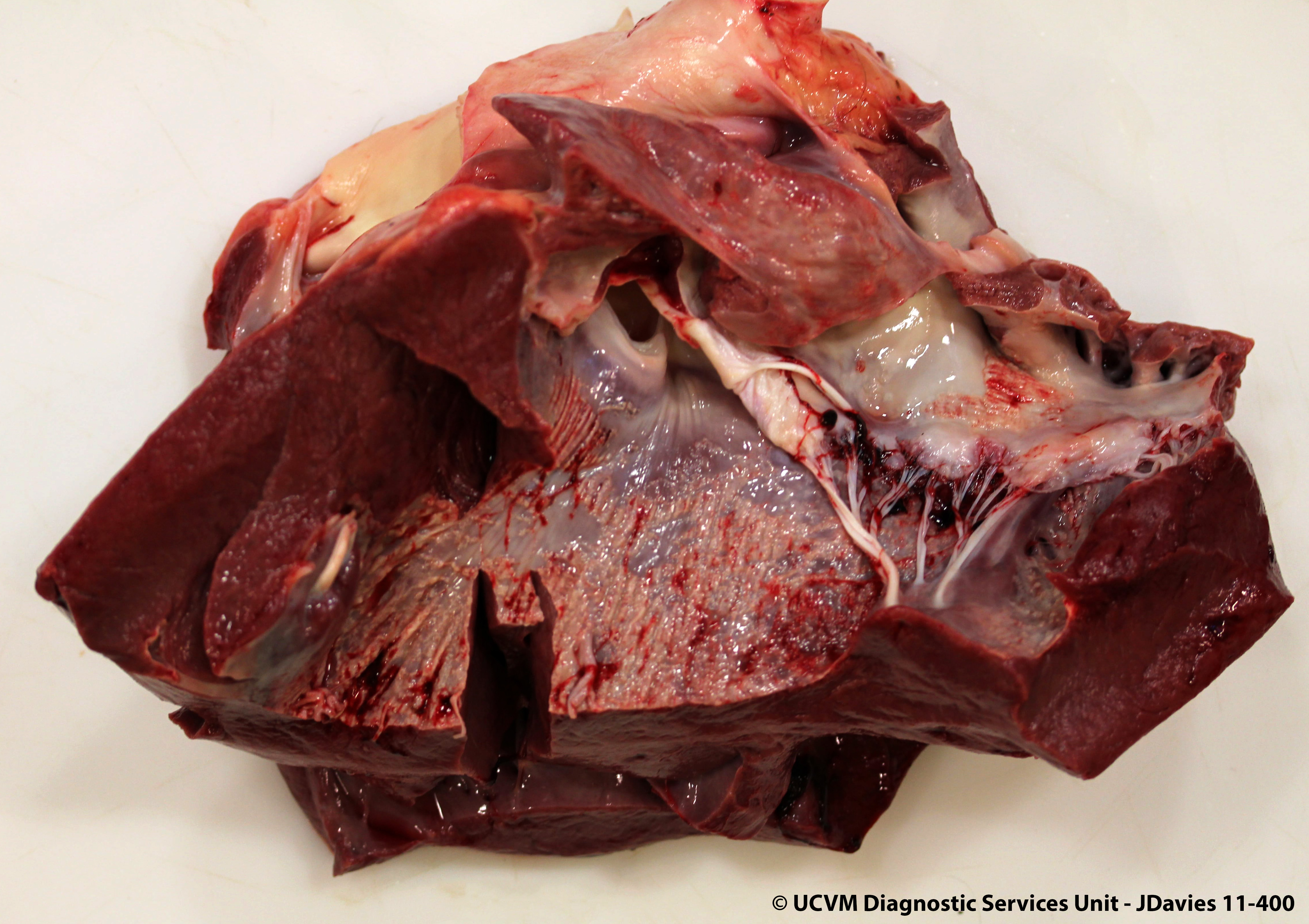 Endocardial mineralization secondary to Mycoplasma bovis infection