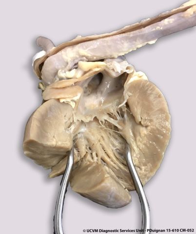 Shown: Congenital/chronic subaortic stenosis, myocardial mineralization