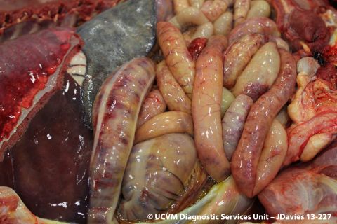 Necrotizing and hemorrhagic enterocolitis caused by Clostridium (Clostridial enteritis)