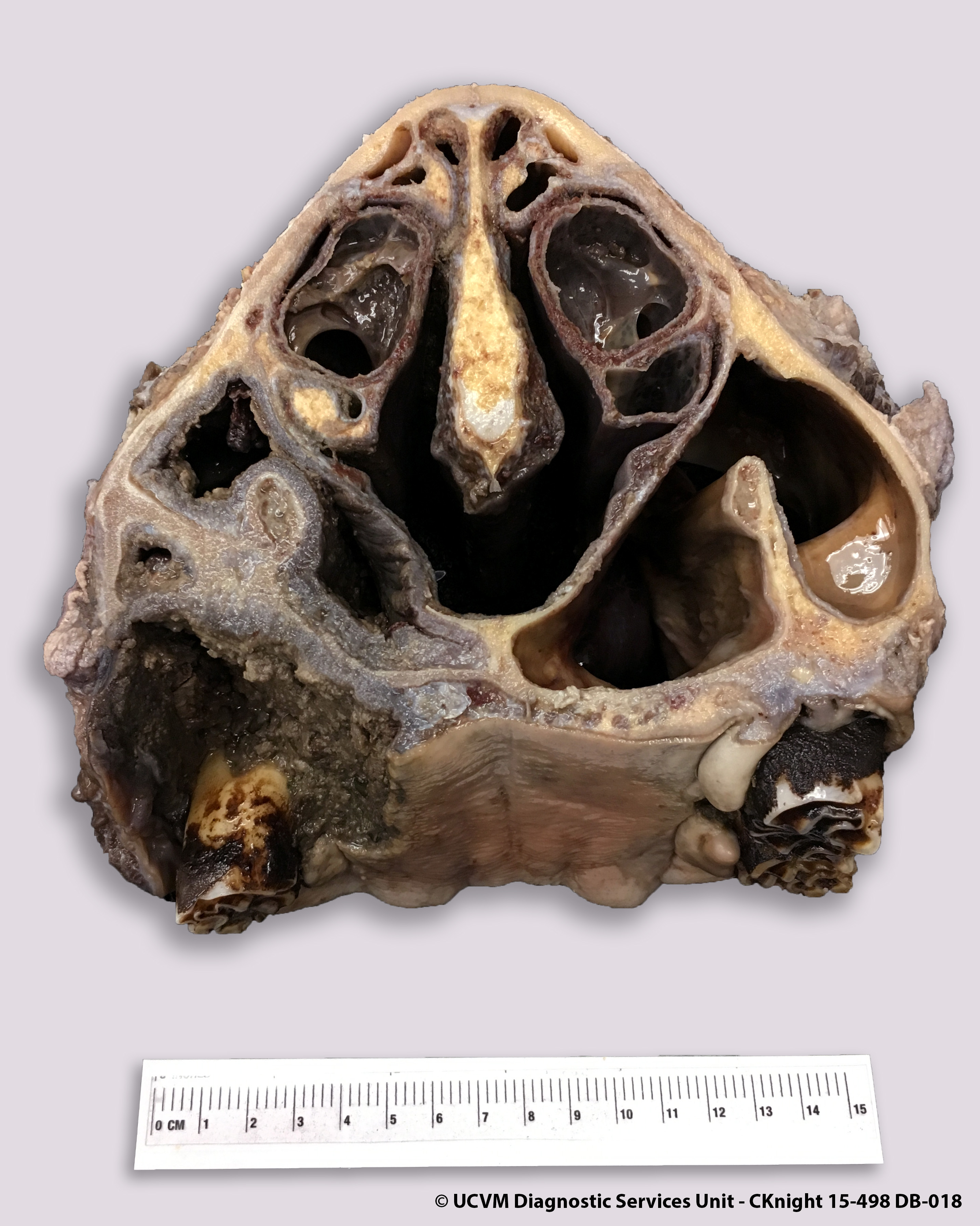 Necrosuppurative stomatitis, osteitis and sinusitis with oromaxillary fistula and multifocal molar tooth loss
