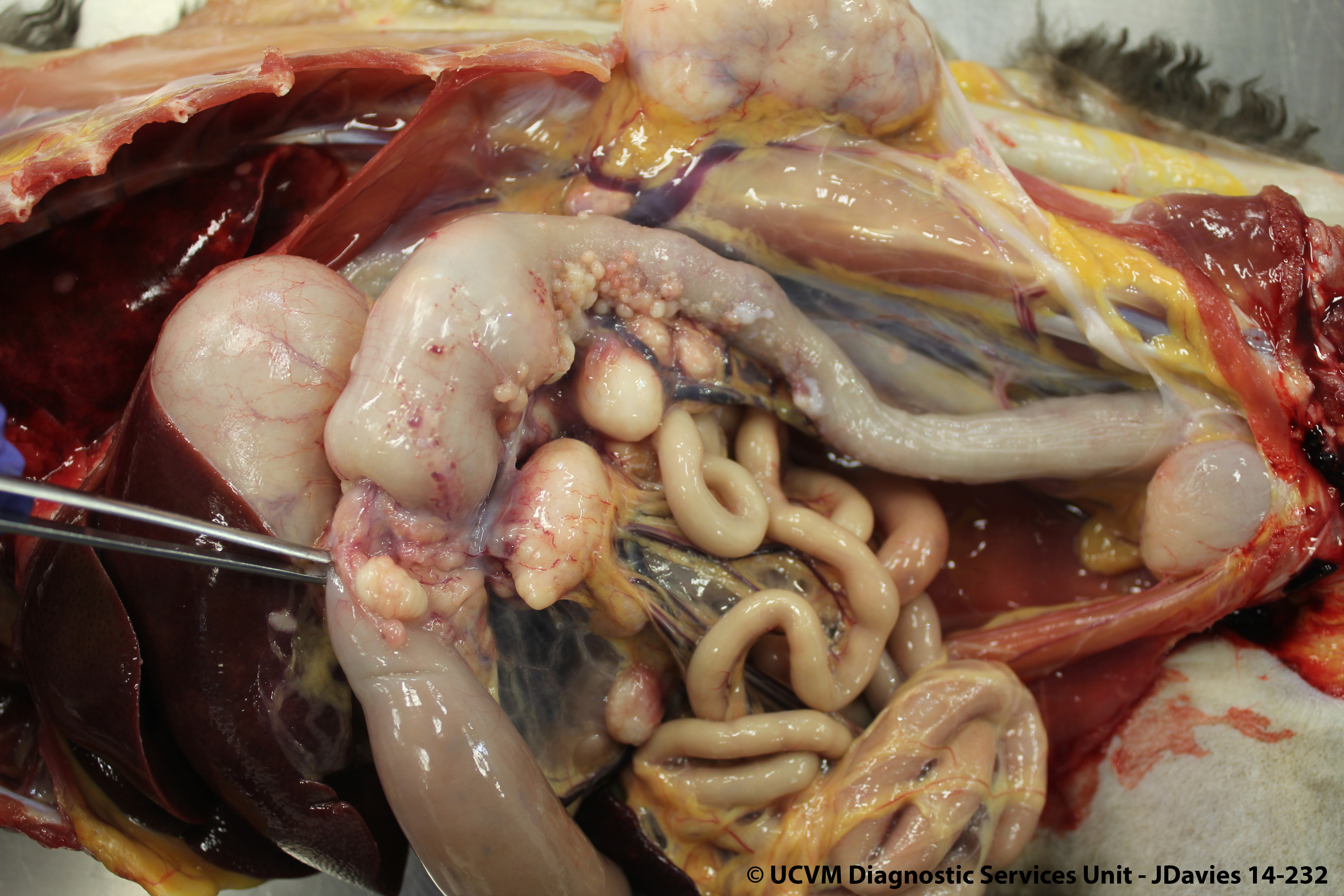 Ruminant, Ovine: Mesenteric lymphatics. Granulomatous lymphangitis in Johne's disease.