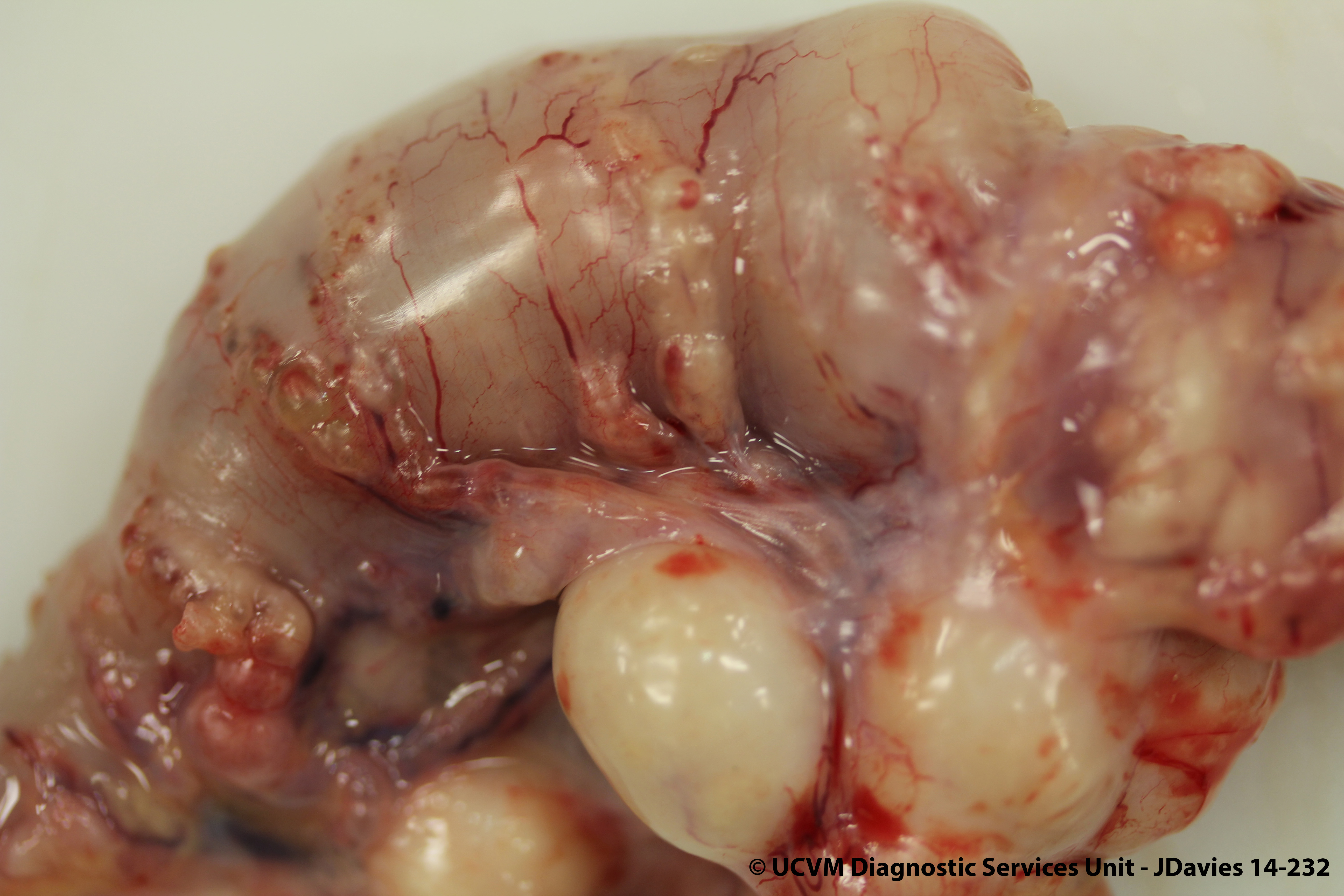 Shown: Lymphosarcoma (Mott cell tumour) with secondary lymphangiectasia