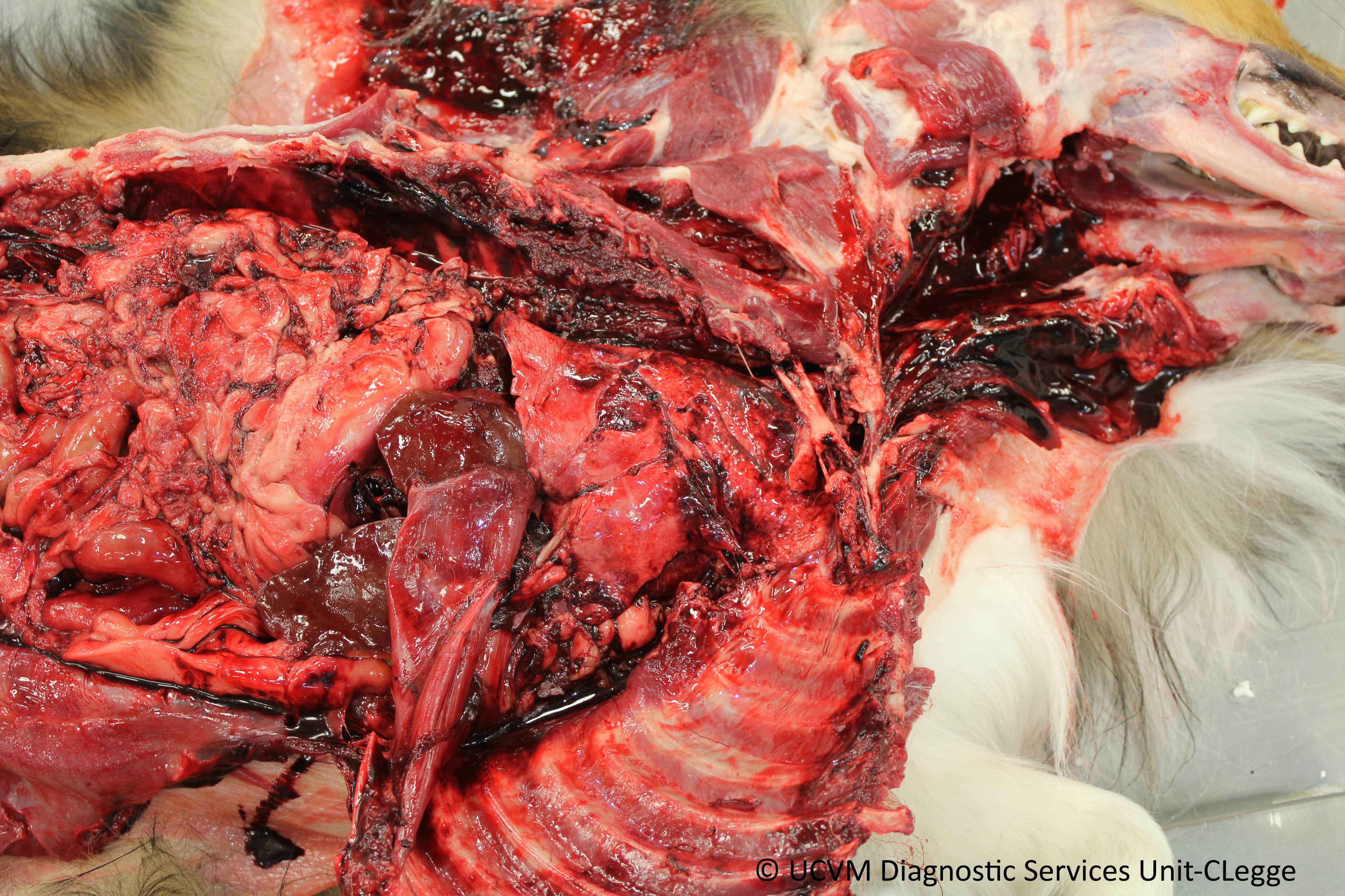 Equid, Foal: Intestines. Necrotizing and hemorrhagic enterocolitis caused by Clostridium (Clostridial enteritis).