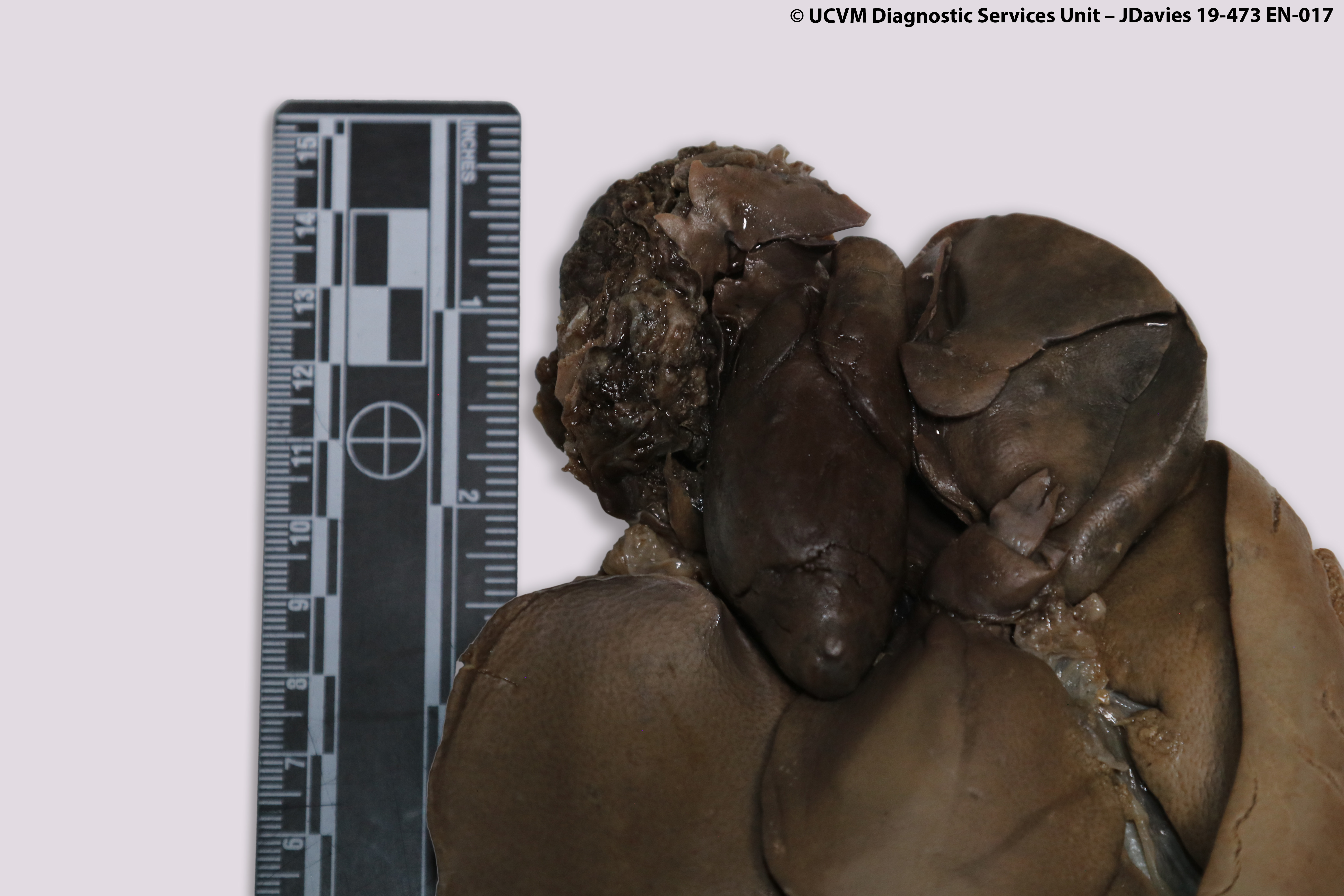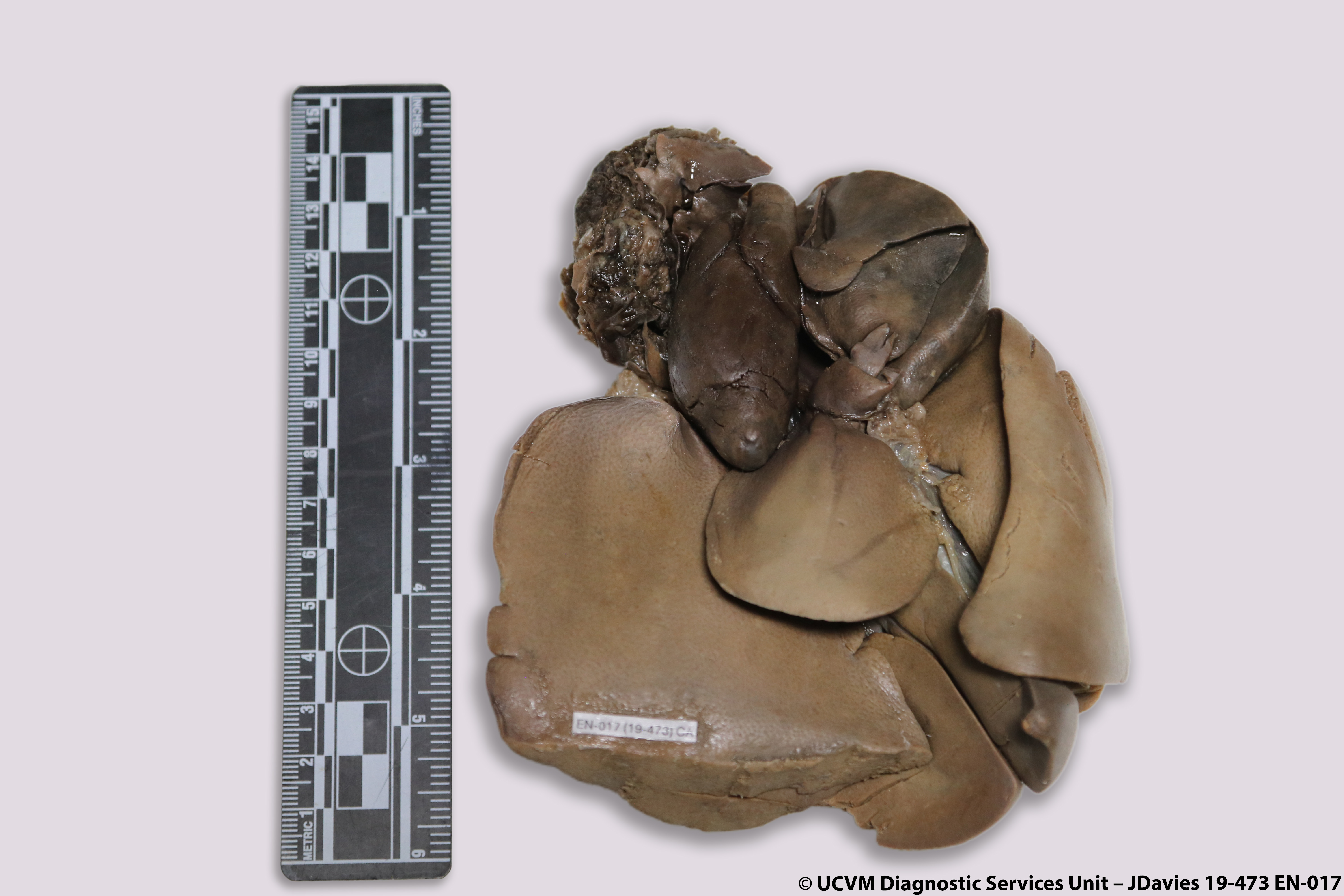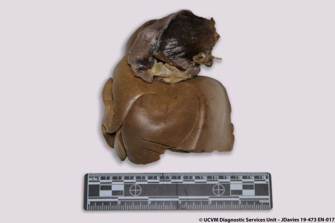 Equid, Horse: Liver. Fibrous tags and parasitic granulomas.