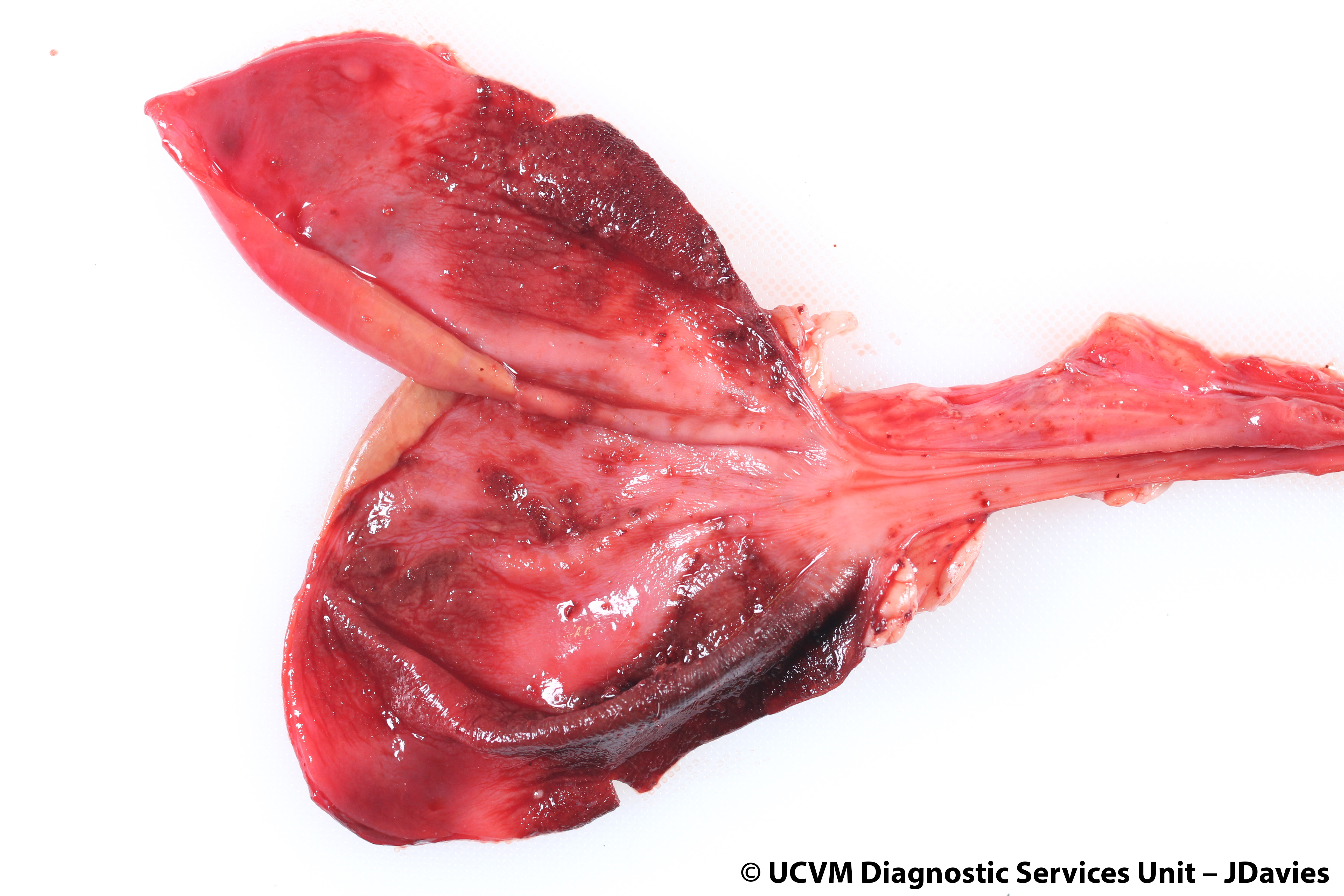 Shown: Hemorrhagic cystitis secondary to urethral obstruction