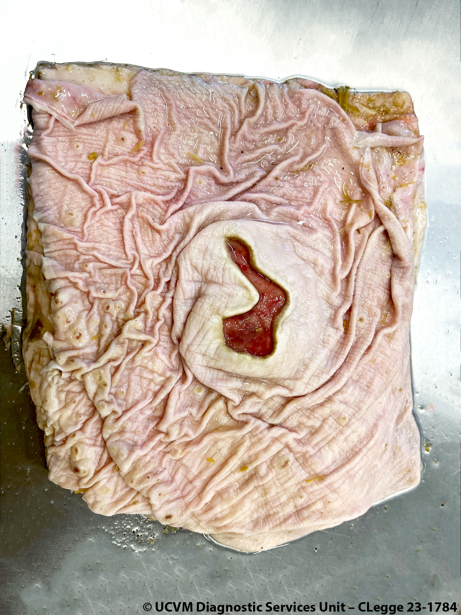 Ruminant, Farmed Bison: Tracheobronchial lymph node. Caseonecrotic lymphadenitis caused by Mycoplasma bovis.