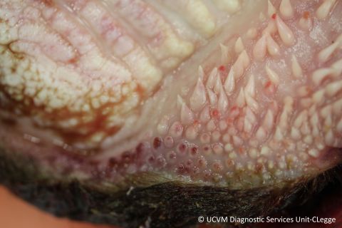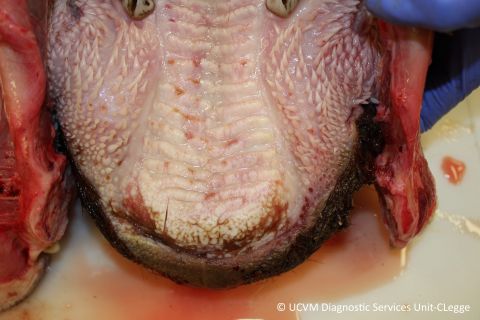 Erosive/ulcerative stomatitis in mucosal disease (bovine viral diarrhea)