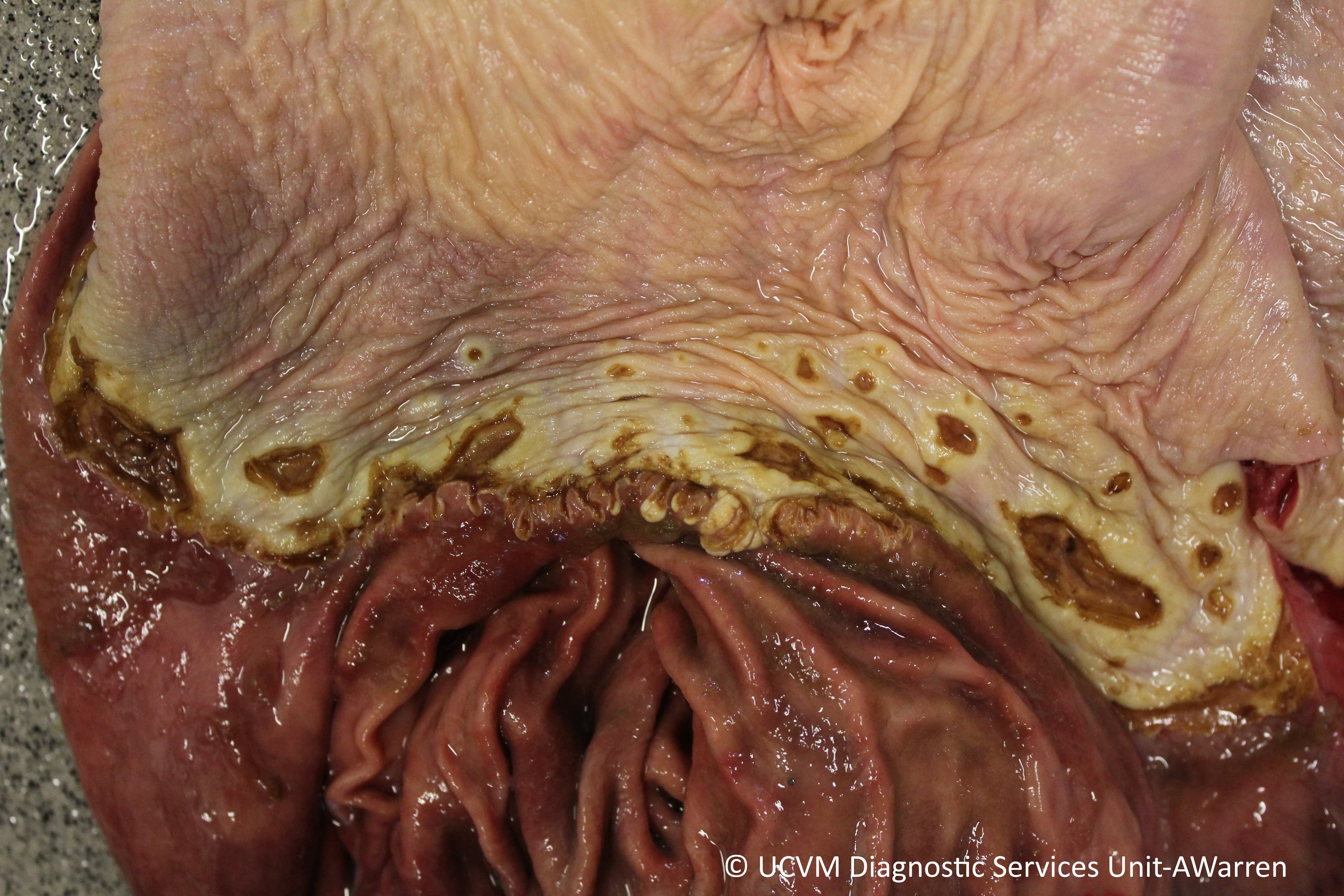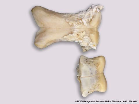Equid, Horse: Tibia. Osteochondrosis dissecans of the distal intermediate ridges of the tibia.
